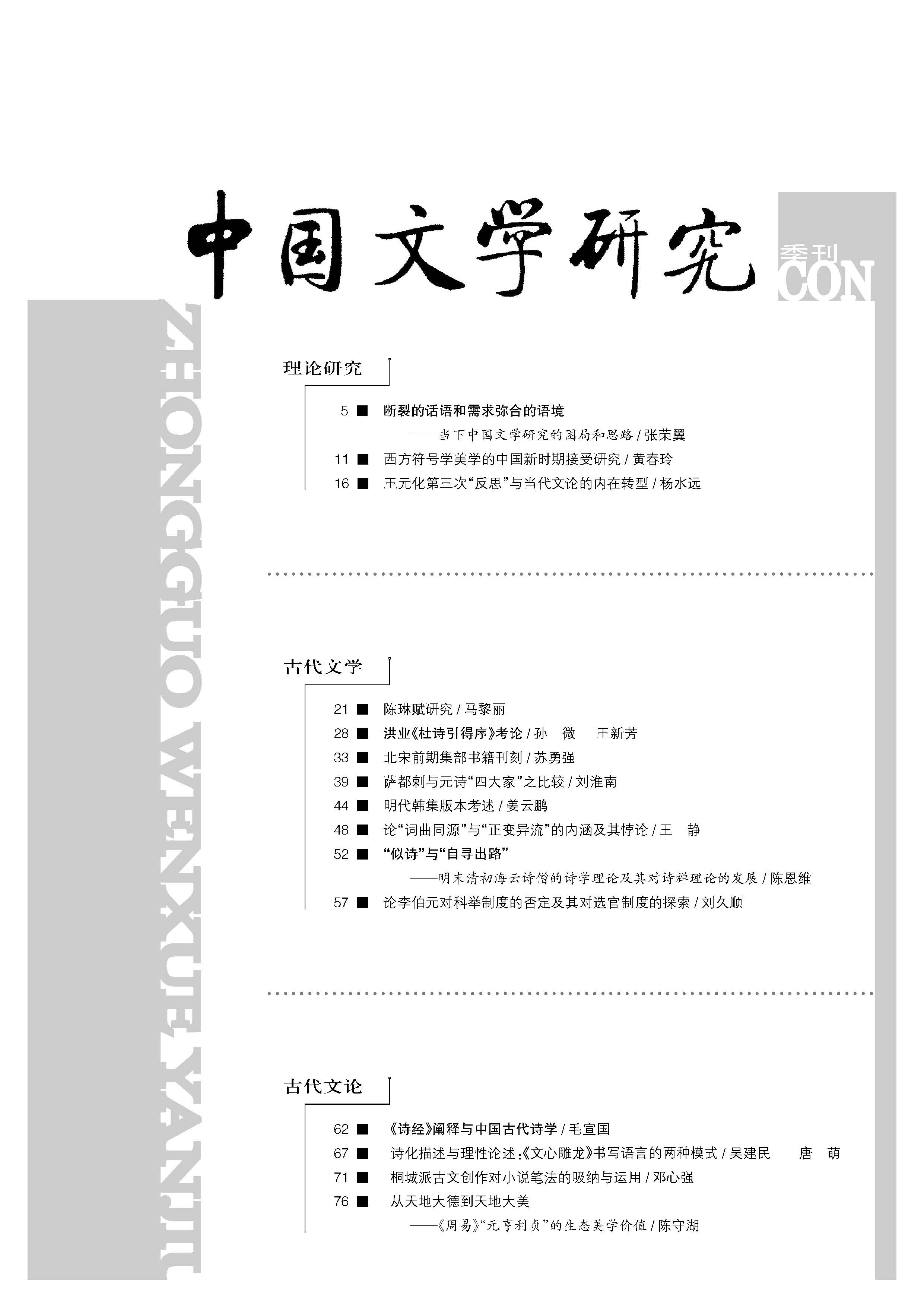 《中国文学研究》2016第一期(总120期)(补)