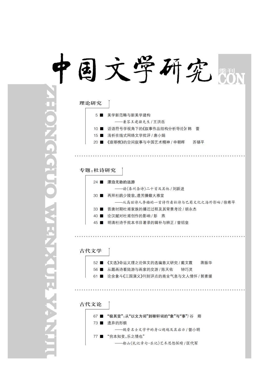 《中国文学研究》2017-1目录