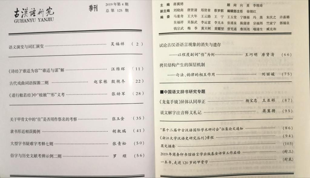 《古汉语研究》2019年第4期(总第125期)