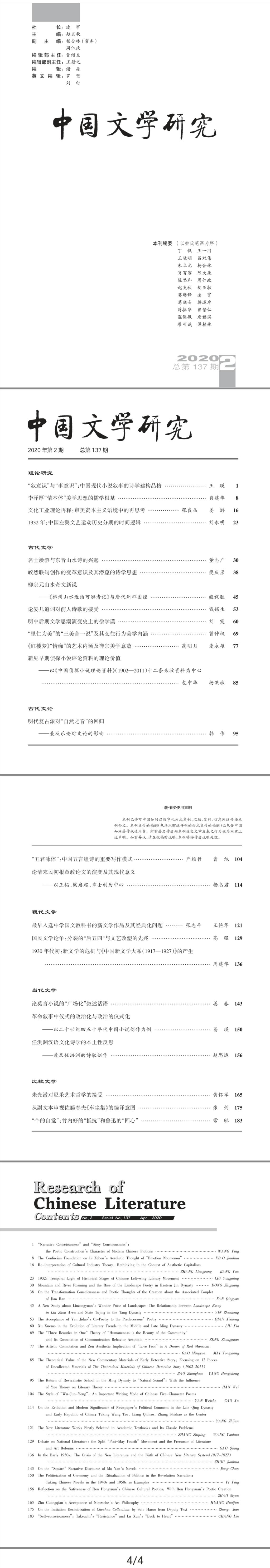 《中国文学研究》2020年第1期总第136期