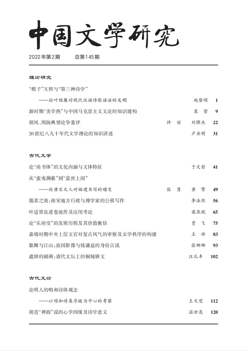 《中国文学研究》2022年第2期总第145期