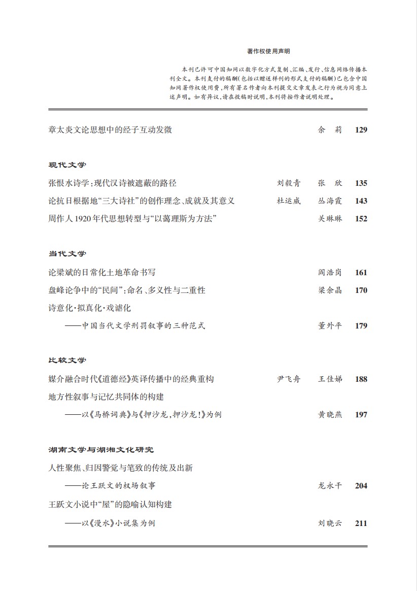 《中国文学研究》2022年第1期总第144期