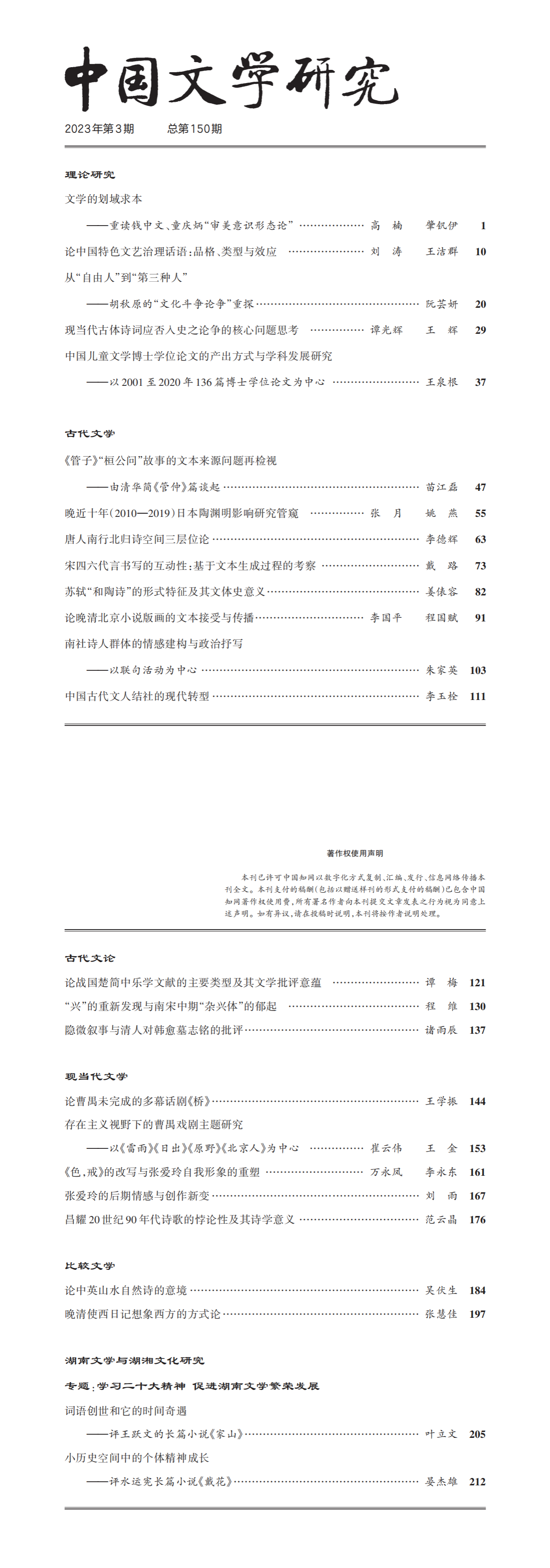 《中国文学研究》2023年第3期总第150期
