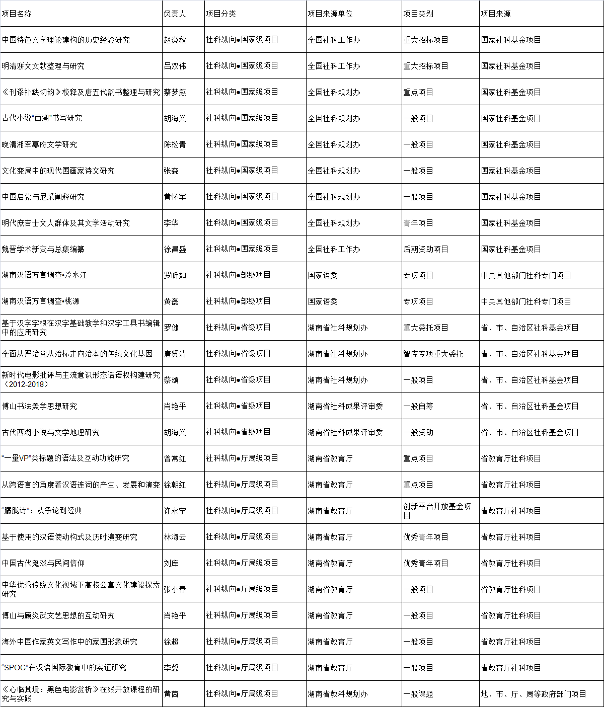 2018年科研项目立项信息一览表