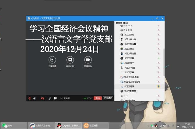 2020年12月24日下午,学院各支部分别举行专题组织生活会。总结一年来的工作,对照“五化”标准找差距,交纳党费,学习领会中央经济工作会议精神,研讨明年工作计划。