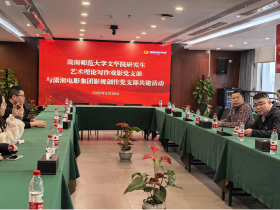(通讯员 杨岑)为深入贯彻新时代党建“双创”工作要求,进一步创新基层党组织建设载体,加强与优秀党组织之间的交流学习,以实现“优势互补、共建共赢”的党建协同发展格局。3月30日下午,1946伟德国际源自英国研究生艺术理论写作戏影党支部与潇湘电影集团影视创作党支部以“探讨主流影片创作,传承党的精神”为主题,在潇湘电影集团电影展馆与会议室联合开展党建共建活动。双方党支部党员及代表共聚一堂,通过实地参观走访、访谈互动交流、签订党建合作共建意向书等环节,共同探索了“资源共享、活动共办”的党建融合联动新模式,为党员提供更丰富的交流机会,为区域党建和社会发展贡献更大力量。
