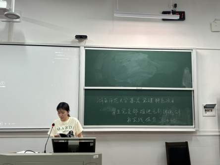 活动伊始,党支部第一书记刘库老师作开场致辞。他指出,本次红色主题影视作品观摩讨论会是党支部主持的伟德BV1946基层党建特色项目“学生党支部推进'光影铸魂'创新实践探索”的重要实践内容之一。希望大家大家认真观摩、积极发言,通过影视作品和文字作品的形式,将党的光辉历程、英雄事迹、理论思想等深入浅出地呈现给广大党员群众,在观摩红色主题影视作品时,深刻感受党的旺盛生命力与强大战斗力,把握党的人民性、先进性与纯洁性。