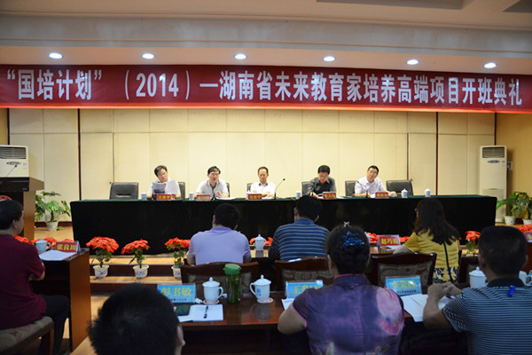 (湖南师大新闻网 张依倩)8月15日上午,“国培计划(2014)”湖南省未来教育家培养高端项目 (初中学科)研修班在我校红楼五楼报告厅开班。省教育厅副厅长葛建中,我校党委书记张国骥、副校长王善平出席会议。开班仪式由省教育厅教师工作与师范教育处处长张大伟主持。