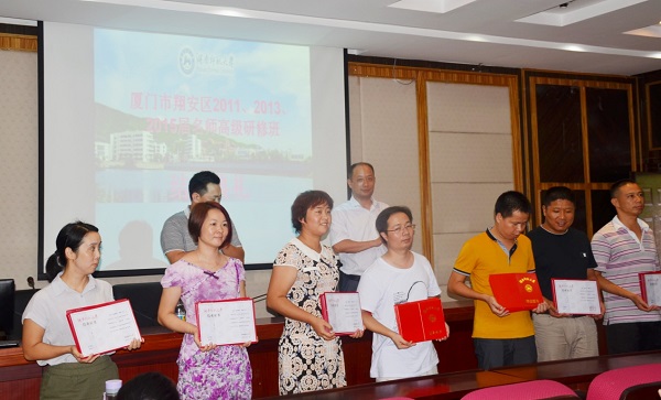 2015年8月11日,厦门市翔安区2011、2013、2015届名师高级研修班结业典礼在1946伟德国际源自英国216报告厅举行,厦门市翔安区教师进修学校师训处主任王玉龙、1946伟德国际源自英国副院长彭万福和研修班全体学员参加了结业典礼。典礼由1946伟德国际源自英国成教办主任张德强主持。
