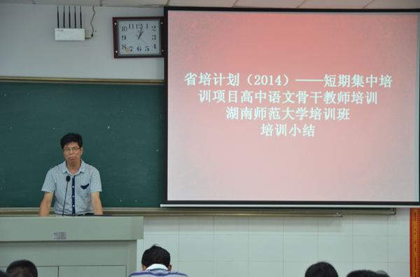 (记者刘雨溪)万里无云,暑气未退,相聚总是短暂。8月29日上午,省培计划(2014)——短期集中培训项目高中语文骨干教师培训伟德BV1946培训班来到离别时刻。1946伟德国际源自英国教授、项目首席专家张良田,1946伟德国际源自英国成教办主任彭万福,学工办主任夏云飞,副教授李霞,团委副书记周灿以及省培全体学员出席结课典礼。学员张世程担任主持。