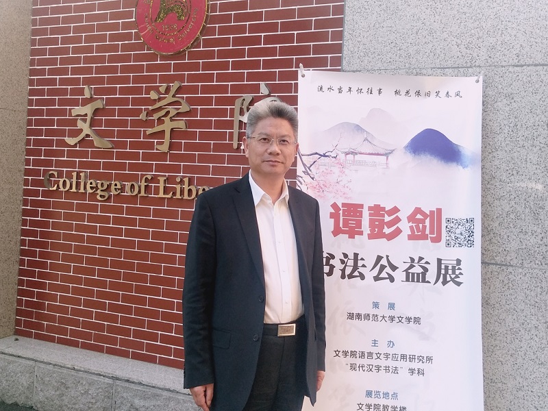据悉,谭彭剑为我校中文系92级学生,中共党员,青年书法家。此次展览吸引了省内各高校师生、业内书法家和社会书法爱好者前来参观。湖南卫视、湖南日报、红网、湖南教育电视台、《三湘都市报》、《长沙晚报》等多家媒体对展览进行了报道。
