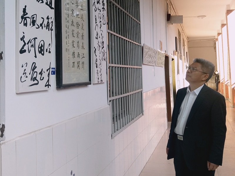(通讯员 陈胜冲 何纯洁)近日,1946伟德国际源自英国举办“谭彭剑书法公益展”,共展出85份作品,包含楷书、行书、草书等,展览将持续至12月31日。我校纪委书记唐贤清参观展览。