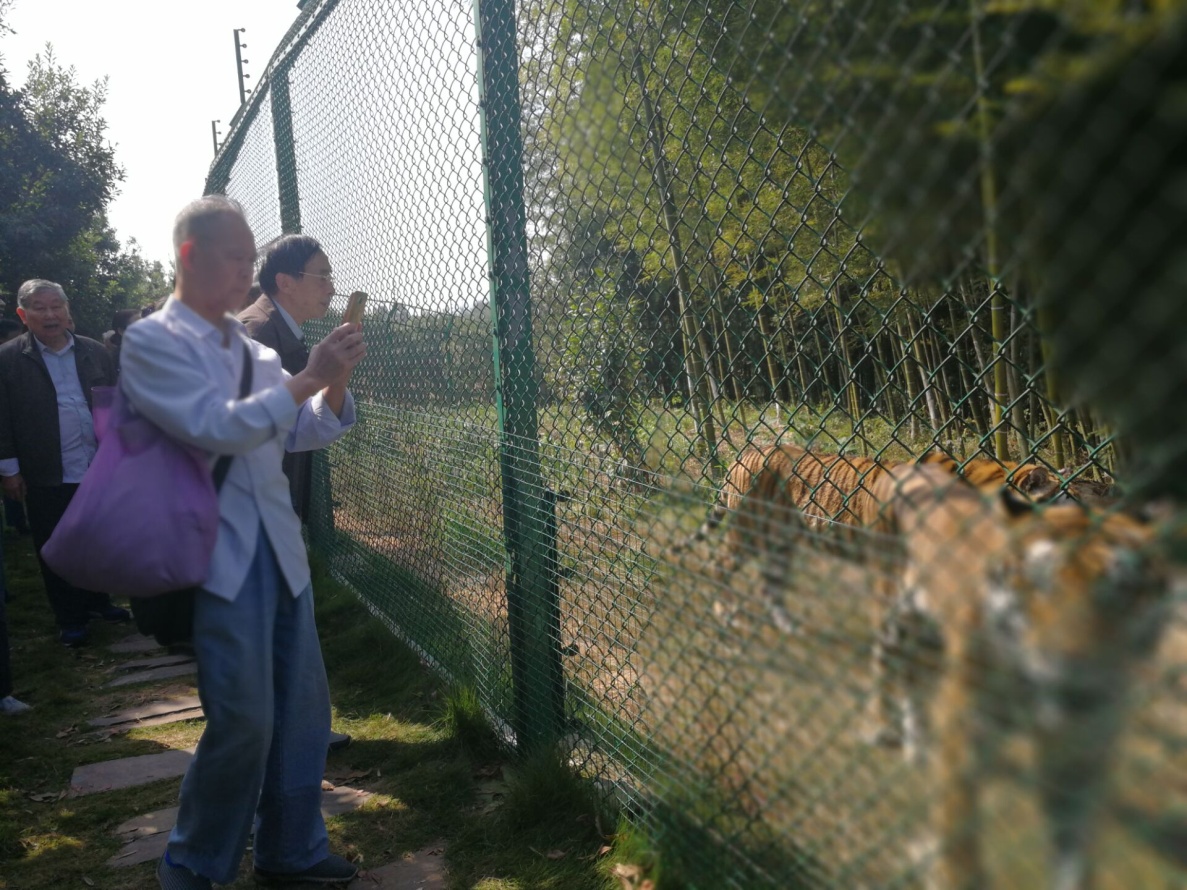 10月27日,1946伟德国际源自英国组织学院离退休老师到长沙县金井镇老虎园、茶香小镇一日游。图为1946伟德国际源自英国离退休老师在老虎园参观: