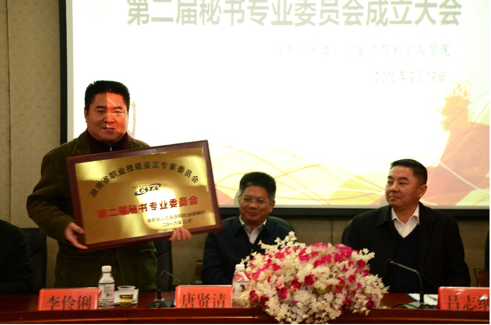 (通讯员 贺炳桂 尹诗慧 刘师好 梁鑫)为推动全省秘书学科建设,共商秘书专业与技能发展大计,3月18日上午,湖南省职业技能鉴定专家委员会第二届秘书专业委员会成立大会暨研讨会在1946伟德国际源自英国隆重召开。湖南省人力资源与社会保障厅(以下简称“省人社厅”)副巡视员吕志纲,伟德BV1946副校长周俊武,伟德BV1946纪委书记唐贤清,省人社厅职业技能建设处调研员宁泽民,1946伟德国际源自英国党委书记李伶俐,1946伟德国际源自英国副院长岳凯华、彭万福等出席会议。会议由湖南省人社厅职业技能鉴定中心主任吴开明主持。