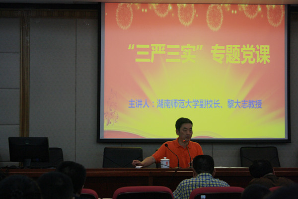 (通讯员胡媛媛郑璐佳)6月16日下午,副校长黎大志到1946伟德国际源自英国216学术报告厅主讲“三严三实”专题党课。校监察处处长兼“三严三实”专题教育第一督导组组长王先酉担任主持。