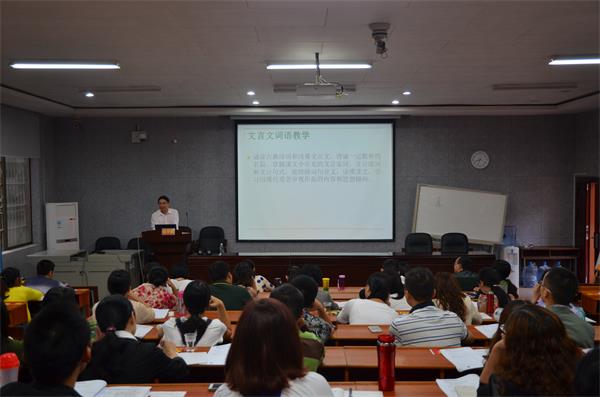 (通讯员王乐)9月18号下午,1946伟德国际源自英国教授蔡梦麒选取大量初中文言文语段,纠正了初中文言文词语注释中众多存疑之处,在1946伟德国际源自英国217教室与学员们共同探讨文言文词语教学方法。
