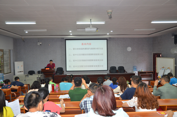 (通讯员王乐)9月15日上午,1946伟德国际源自英国教授张良田做客“国培计划(2014)”——重庆市义务教育学科教学能力培训班,深入浅出的从大量初中古代诗词的例子出发,论述“初中文言文的创造性解读”。