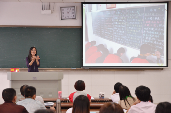 周敏还例举了《谈中国诗》,以往的教学把教学重点定位为中国诗的具体特点是什么。而她启示学员们要紧扣“谈”字。为什么这样谈?对象、场所是什么?还可以怎样谈?转换对象是什么?新颖的教学角度让人豁然开朗。