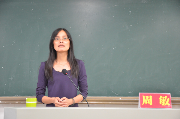 周敏用高中语文课文中的«声声慢»引入,以诗词的意蕴带领学员走进生动的语文世界。接下来,周教授提出语文教学首先是“死”去“活”来,根于文字;其次是纵横开阖,尽我所用;再是深入浅出,融会贯通。