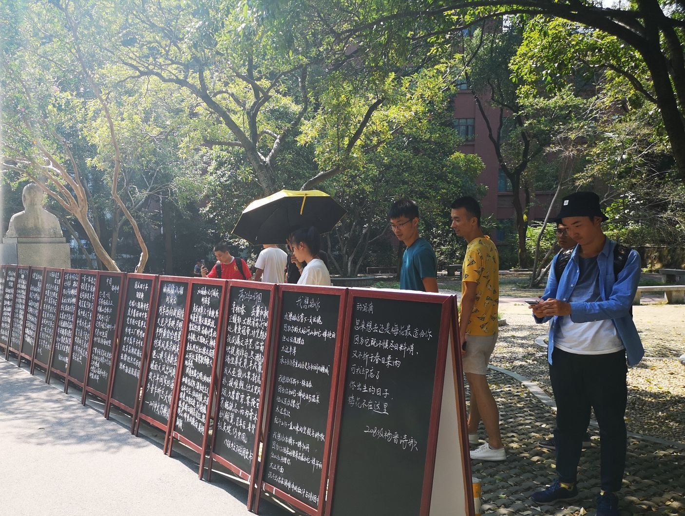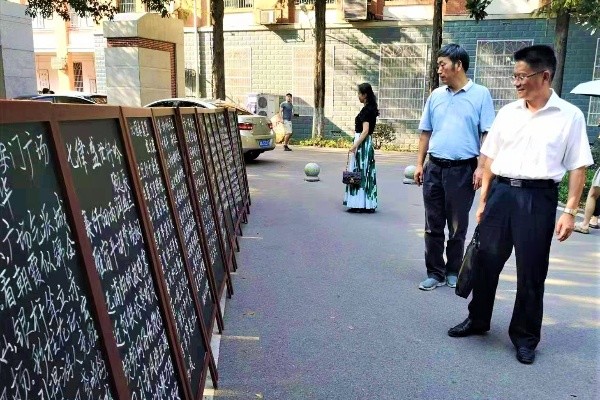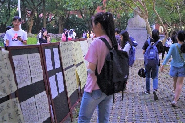 为庆祝中华人民共和国成立70周年,1946伟德国际源自英国组织开展“诗词迎国庆,吟诵传文明”系列活动。主要活动包括原创“我和我的祖国”诗歌评比活动、“诗词迎国庆,吟诵传文明”古典诗词吟诵大会和原创作品书法展。此次展示的书法作品精选自1946伟德国际源自英国师生暑期为祖国七十华诞原创的500余首作品。展览期间,吸引了广大师生驻足观摩。