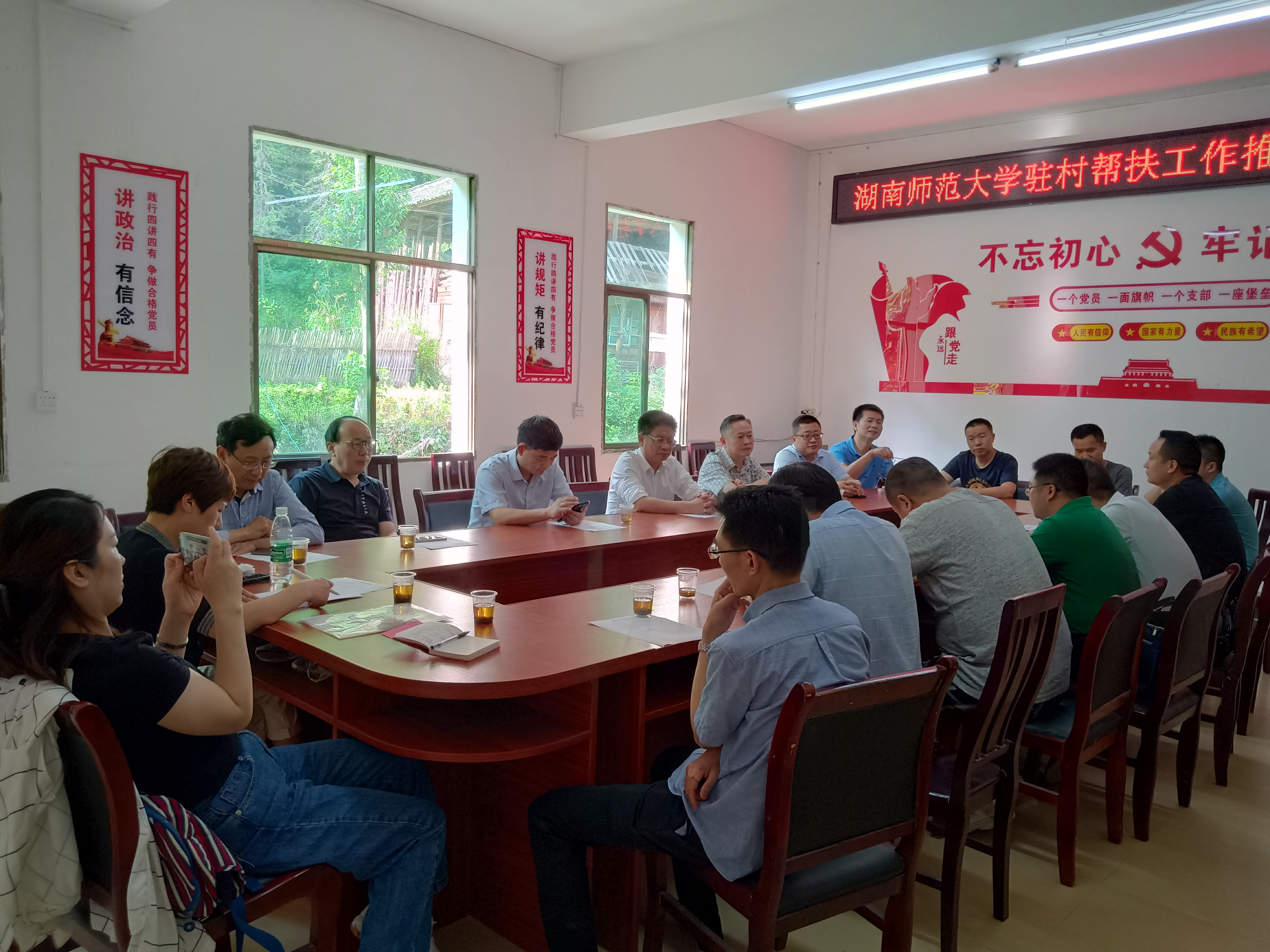 下午,师大驻插柳村扶贫组汇报了近期工作,唐贤清书记做了重要讲话,绥宁县相关领导参加会议。