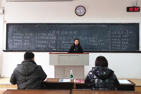 我院党委副书记熊剑峰、中文系副主任、语文教学法教研室刘光成副教授、古代文学教研室曾绍皇教授及学工办全体教师到现场指导工作,与用人单位亲切交流,询问用人需求、招聘情况等。现场的老师也与同学们交流,了解他们的就业意愿、薪酬期望、求职方向和遇到的困难,并鼓励毕业生们面对严峻的就业形势,抓住求职机遇,先就业、后择业。