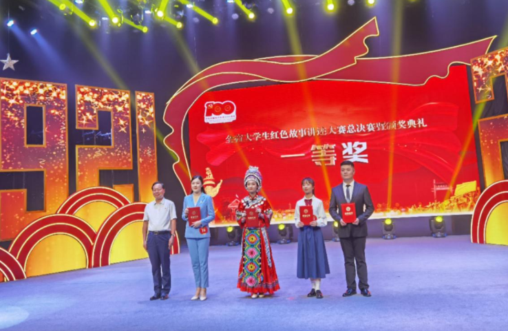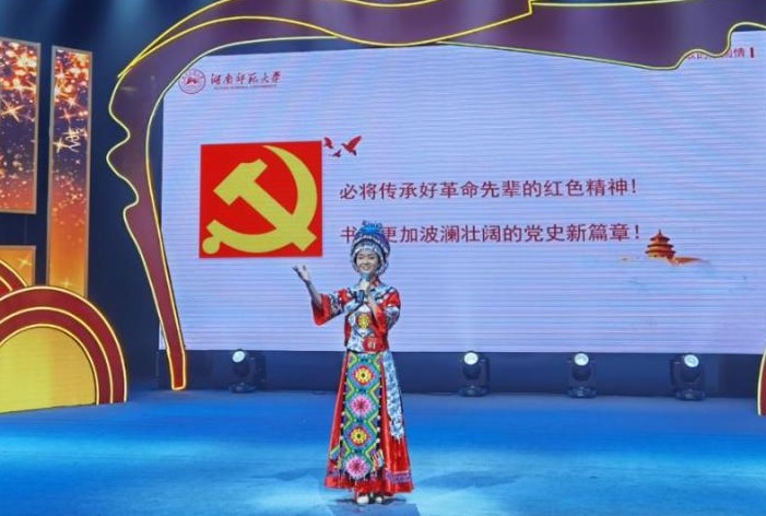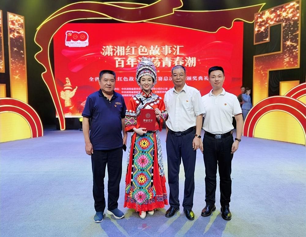 比赛现场,参赛选手们以湖湘革命先辈、开国将帅、英雄模范和在百年党史历程中具有重大影响的历史事件为基本素材,紧扣红色主题,从自身独特视角出发,讲述红色故事。我校1946伟德国际源自英国硕士研究生江静雪第一位出场,以《一首湘西民歌的家国情》为题,深情讲述了湘西土家民歌《马桑树儿搭灯台》背后集思想性、故事性、教育性于一体的红色故事,生动诠释了在百年党史中中国共产党员的初心使命与家国情怀,感动了在场所有评委与观众,最终荣获全省最高奖。
