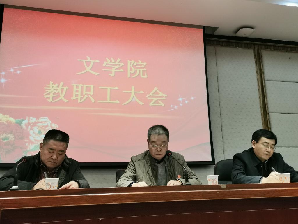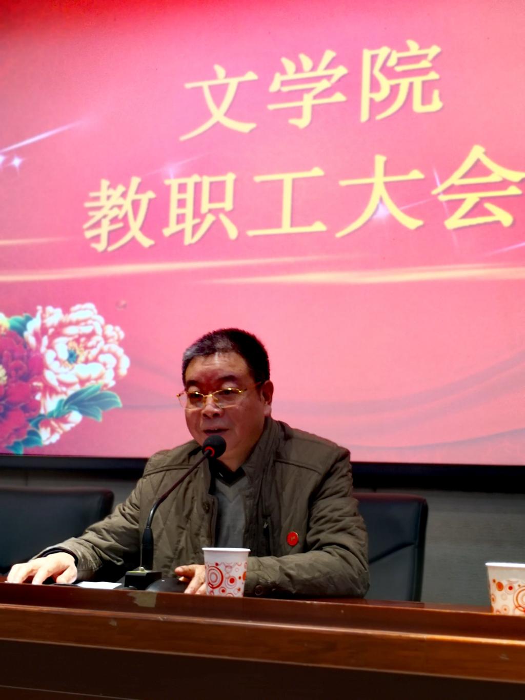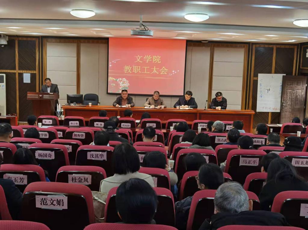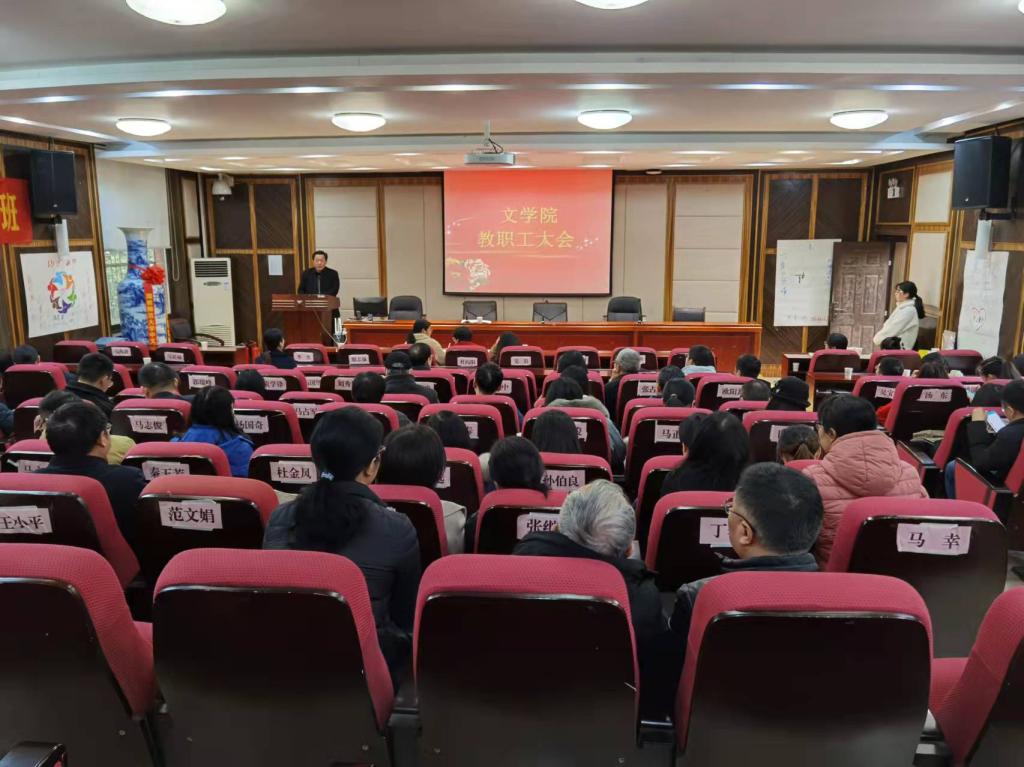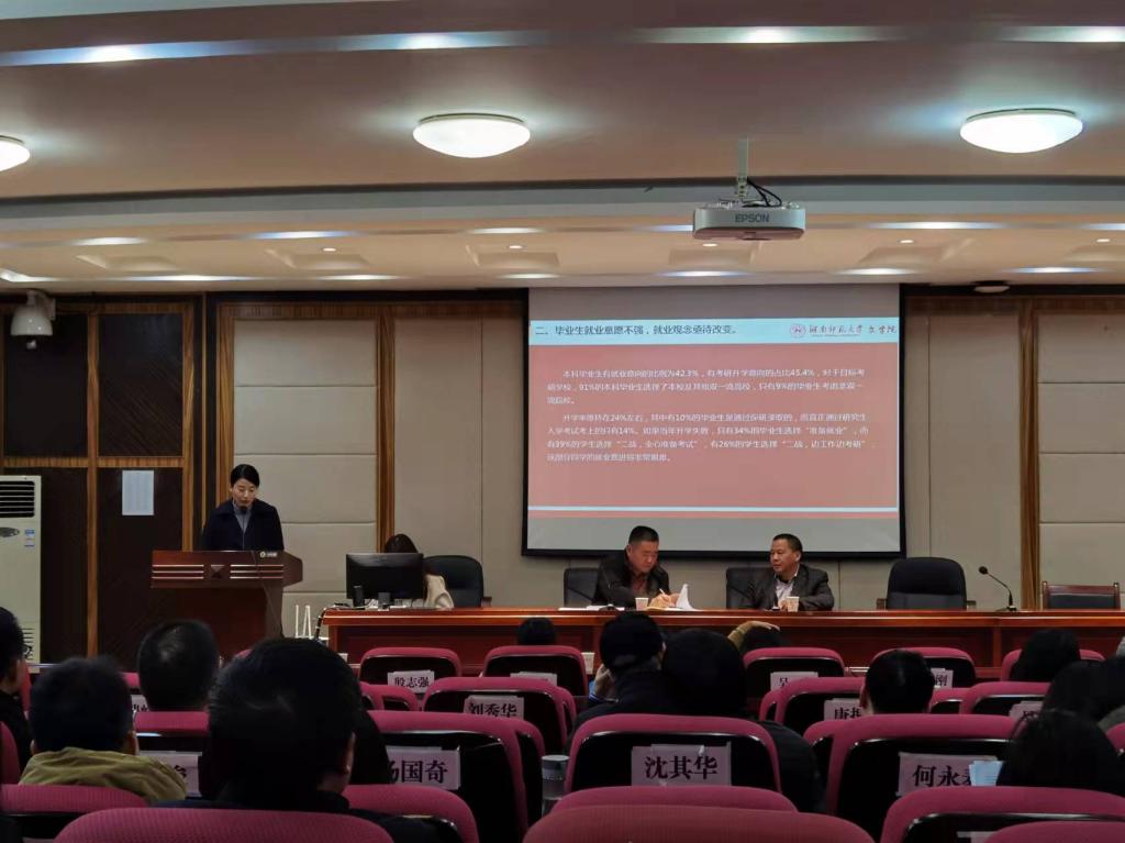 2021年12月16日下午,学院在216报告厅召开全院教职工大会,院党委书记李伶俐主持,校党委副书记周俊武、校党委委员组织部部长沈又红出席。