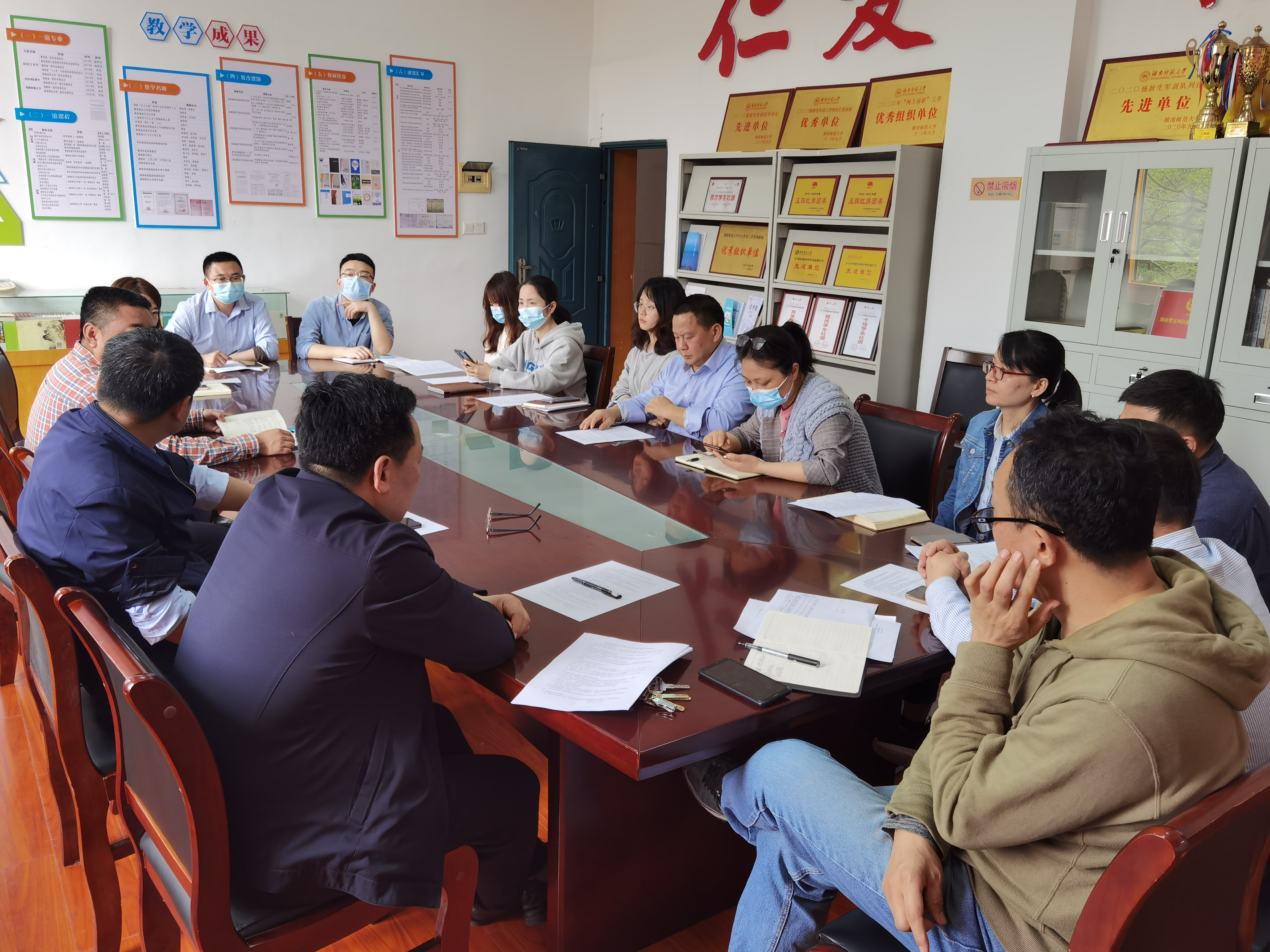 会上还就学院教育实习和培训等工作的防疫问题进行了研究,对学院防疫工作存在的不足进行了研讨,并立行立整。全体与会人员认真学习了学校《关于从严从紧做好当前学校疫情防控工作的通知》。
