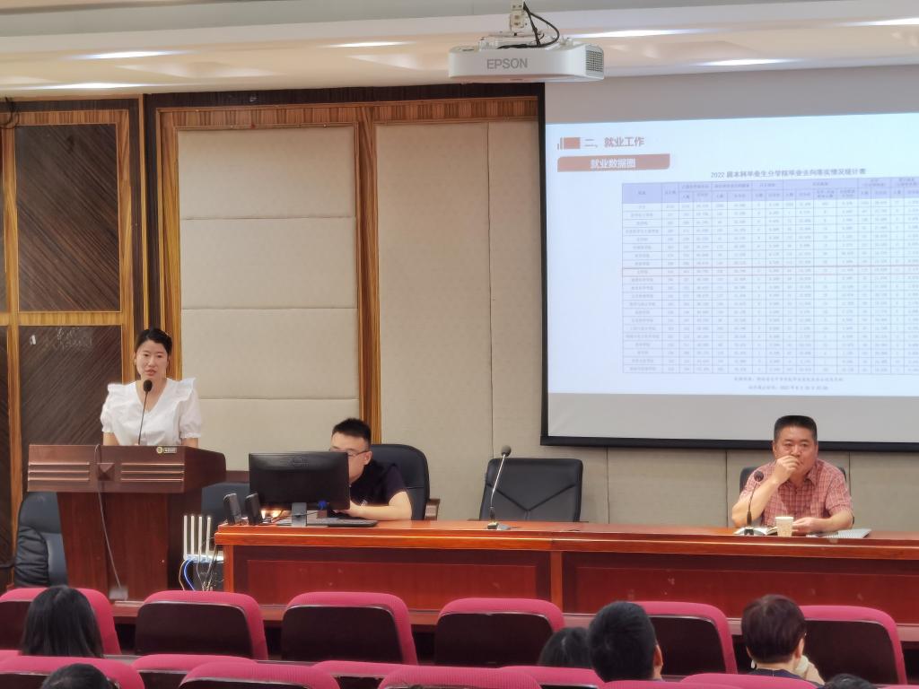院党委副书记刘宓蜜专题通报了学院2022年本科生招生与就业的有关情况;副院长徐朝红专题通报了学院2022年研究生招生与就业的有关情况。学院招生形势很好,就业前景广阔,学院办学质量得到了广大学生和家长的认可。