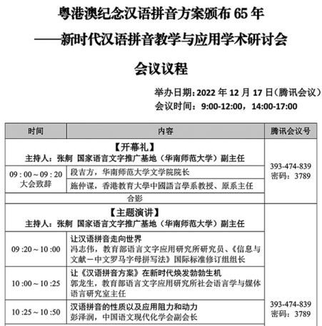 (通讯员:朱淑琪)2022年12月17日,由华南师范大学主办的“粤港澳纪念汉语拼音方案颁布65年——新时代汉语拼音教学与应用学术研讨会”在线下和线上同步召开。中国语文现代化学会副会长、伟德BV1946博士生导师彭泽润教授应邀出席,并且做了《汉语拼音的性质以及应用阻力和动力》的大会主题报告。彭泽润教授在演讲中回顾了卢戆章、赵元任、周有光、冯志伟等语言学家的贡献,论述了汉语拼音服务国家通用语言在拼写和注音功能上的法定地位。他希望小学语文拼音教学,应该在注音功能的基础上,增加拼写功能的教学,执行国家标准《汉语拼音正词法》。他表示,现在汉语拼音在信息高度道路上,在国际汉语教育舞台上,发挥着无穷的威力,形势喜人。彭泽润教授的演讲得到了与会者的高度评价。