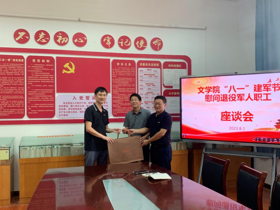学院副院长周凯兴、专职组织员夏云飞、工会主席廖述务一行与退役军人殷明召开座谈会,与他亲切交谈,详细了解身体状况、家庭生活等情况,对当年积极响应祖国号召应征入伍,为国防建设和人民的幸福生活所做出的贡献表示感谢,同时为他送上慰问品,并致以节日的问候和诚挚的祝福。退役军人职工殷明表示,将继续保持“退役不退志,退伍不褪色”的军人本色,将军人品质贯穿于日常,为学校和学院贡献自己的力量。