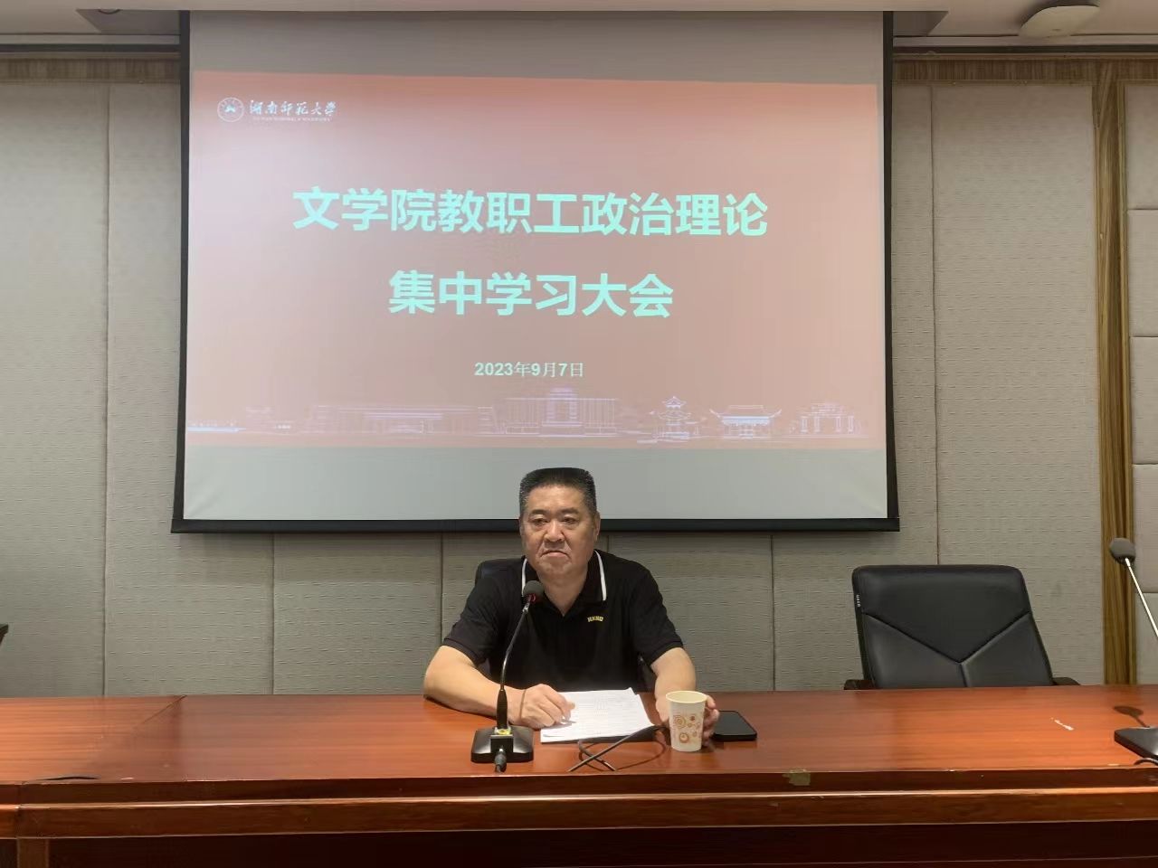 李伶俐结合自身学习体会,作了题为《准确把握“三高四新”的内涵,立足本职建新功》的辅导报告,希望全院教职工牢记“国之大者”,为党育人、为国育才,强化师德师风建设,苦练教书育人本领,用心用情用力投入人才培养,立德树人见行见效,为湖南教育事业高质量发展和教育强国建设作出新的更大的贡献!最后,在39个教师节即将到来之际,李书记代表学院党委和行政向全院教职工致以节日的祝福和问候。
