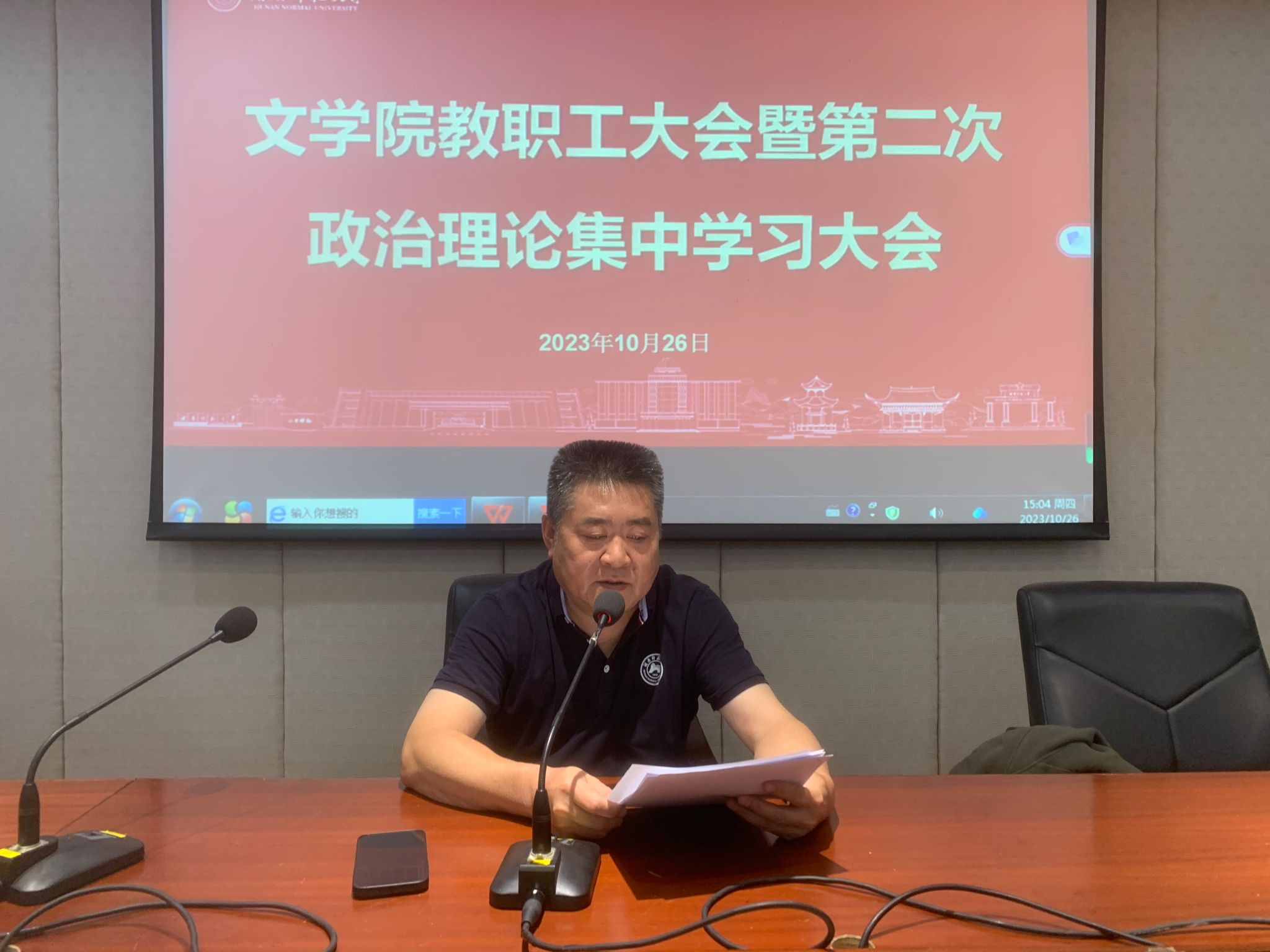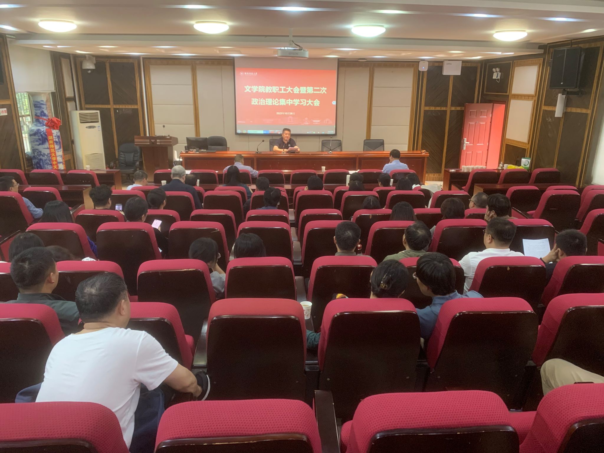 2023年10月26日下午,学院在216报告厅召开教职工大会暨第二次政治理论集中学习大会,会议由院党委书记李伶俐主持。