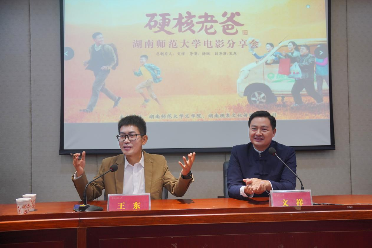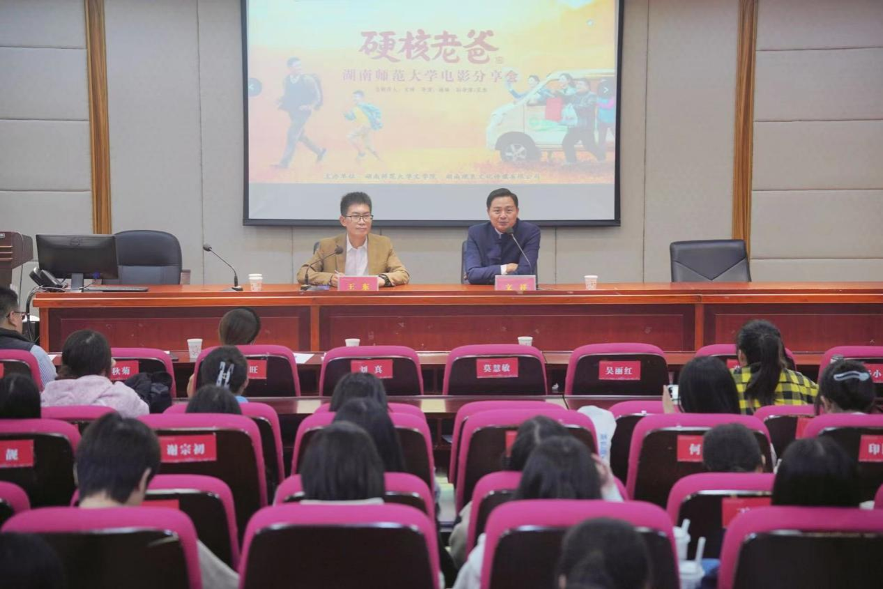 (通讯员刘库)11月10日下午,由1946伟德国际源自英国、湖南砚泉文化传媒有限公司主办的电影《硬核老爸》观影分享会暨文祥“电影追梦人”主题演讲在1946伟德国际源自英国216教室开展。湖南砚泉文化传媒有限公司董事长文祥,湖南省电影评论协会秘书长王东,1946伟德国际源自英国党委副书记刘宓蜜,1946伟德国际源自英国戏剧影视文学系专任教师刘库,1946伟德国际源自英国本科生与研究生等参加活动。活动由省广播电视台导演、省电影评论协会秘书长王东主持。
