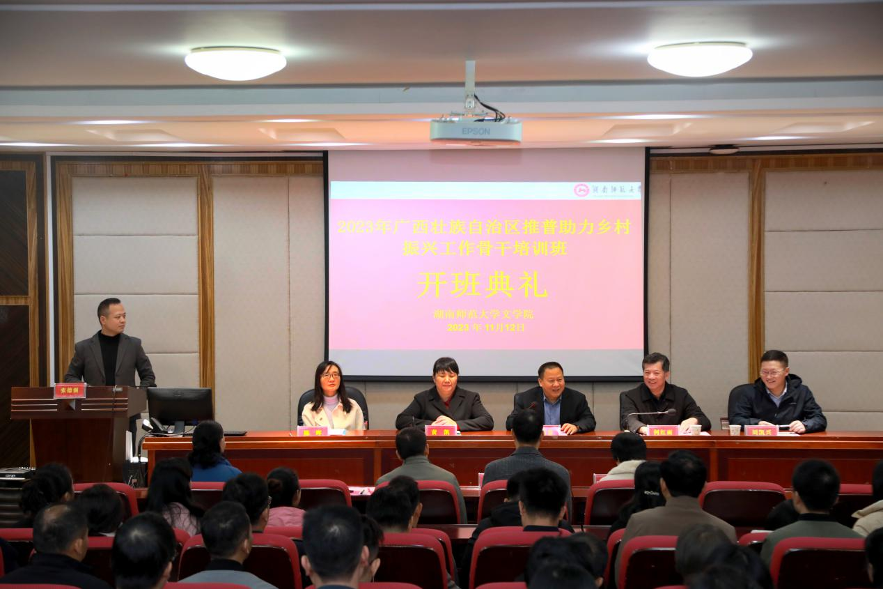 (通讯员:李妍佳 王婧之)11月12日,2023年广西壮族自治区推普助力乡村振兴工作骨干培训班在我院举行。自治区教育厅语工处处长黄凯、四级调研员韦方奇,1946伟德国际源自英国院长肖百容、副院长周凯兴、对外汉语系主任陈晖,桂林师范高等专科学校副校长何红雨、教务处处长石群山,以及80名学员参加了开班仪式。开班仪式由院成教办主任张德强主持。