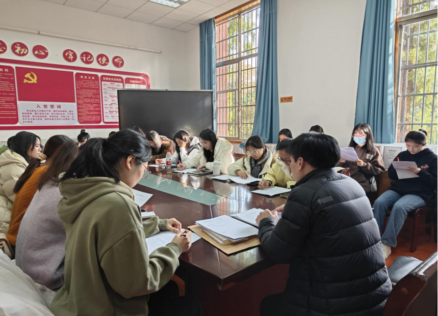 培训会上,夏云飞首先与与会成员一起学习并熟悉《大学生入党的基本流程》,流程主要分五个阶段,一、申请入党;二、入党积极分子的确定和培养教育;三、发展对象的确定和考察;四、预备党员的接收;五、预备党员的教育考察和转正。针对每个阶段的具体要求和时间节点,夏老师都作了有针对性的强调,要求各支委成员一定要牢记在心,在发展党员的过程中严格按照入党的基本流程,做好党员发展工作,包括党员档案材料的填写和归档工作,确保党员发展质量。