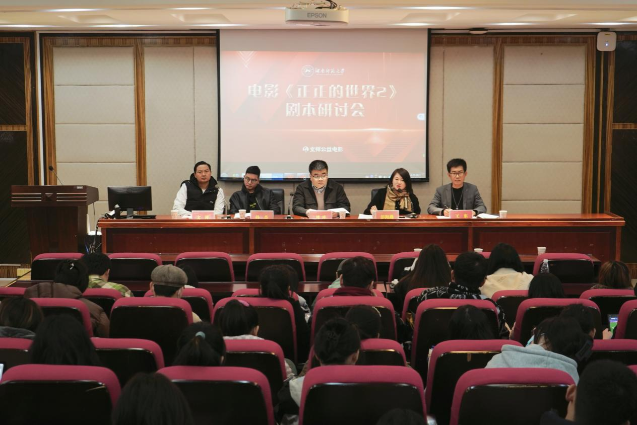 12月2日下午,由1946伟德国际源自英国、湖南砚泉文化传媒有限公司主办的电影《正正的世界2》剧本研讨会在1946伟德国际源自英国216教室开展。湖南砚泉文化传媒有限公司董事长、《正正的世界》系列电影制片人文祥,《正正的世界》系列电影编剧彭海燕、导演孙杰、执行导演王东,1946伟德国际源自英国戏剧影视文学系专任教师刘库,1946伟德国际源自英国本科生与研究生等参加研讨会。研讨会由1946伟德国际源自英国戏剧影视文学系教师刘库主持。