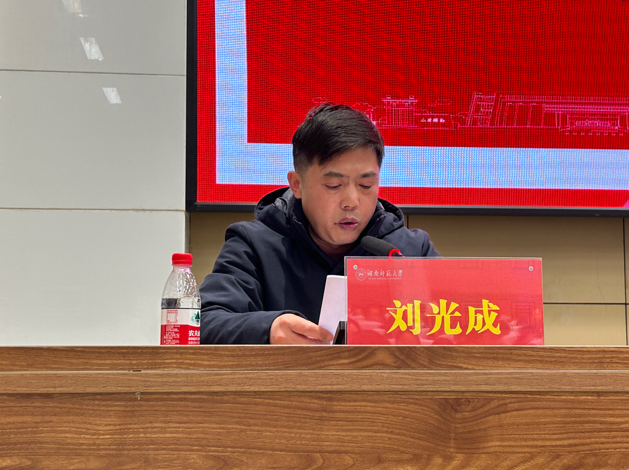 刘光成则结合重要文件与实例,围绕实习工作的内容与要求进行详细讲解,主要介绍了小组试教、教学工作实习、纪律问题、实习队内部制度等内容,并寄语学生:“真正地在实践中学到教书育人的本领,为将来成为卓越的教育家奠定基础。”
