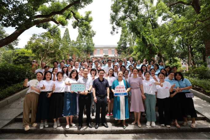 图为2000级中文系校友在文渊楼前合影