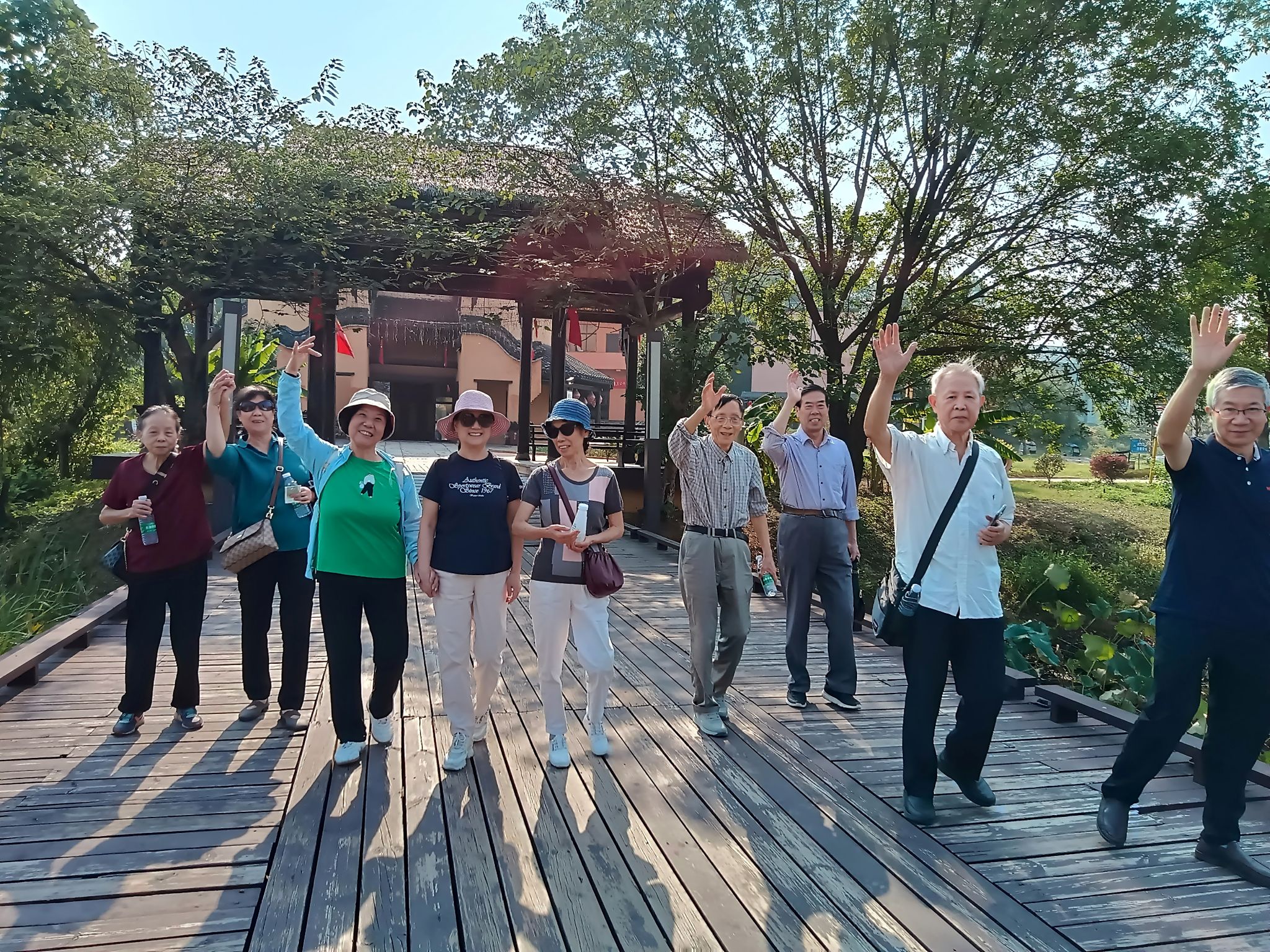 上午8点30分,全体人员在师大工会门口集合,乘车前往宁乡道林古镇景区,老同志们见面后,都异常高兴,互相寒暄问候,一路上欢声笑语。抵达古镇后,在导游的带领下参观古镇:穿越由古风灯笼组成的梦幻隧道,观看歌舞秀表演、方形剧场演出,乘坐小火车感受道林古镇特色的乡村风光,漫步有“小南京”之称的民国风情小镇。大家对古镇的风景赞叹不已,纷纷拿出手机互相拍照,留下美好回忆。
