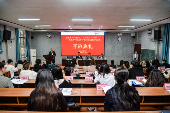 (通讯员王森)时维畅月,序属金秋。11月16日上午,新疆维吾尔自治区“区培计划(2024)”普通高中语文骨干教师能力提升培训班开班典礼在文渊楼217报告厅隆重举行,1946伟德国际源自英国党委书记熊剑峰、副院长周凯兴、教学班主任周敏副教授以及来自全疆各地州的50名高中语文骨干教师参加开班活动。