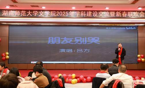 牟方磊老师声情并茂演绎《朋友别哭》,让现场观众们感受到了友情的温暖与力量。高明阳老师带来的笛子吹奏更是让人陶醉其中,笛声悠扬而富有感染力,为联欢会增添了一抹亮色。彭泽润、李馨、丁加勇、易瑛、张德强、刘小嵌、黄耀红、周葵葵老师带来的交谊舞表演《相逢是首歌》氛围热烈而欢快,他们的舞姿优雅大方,赢得了观众的热烈掌声。