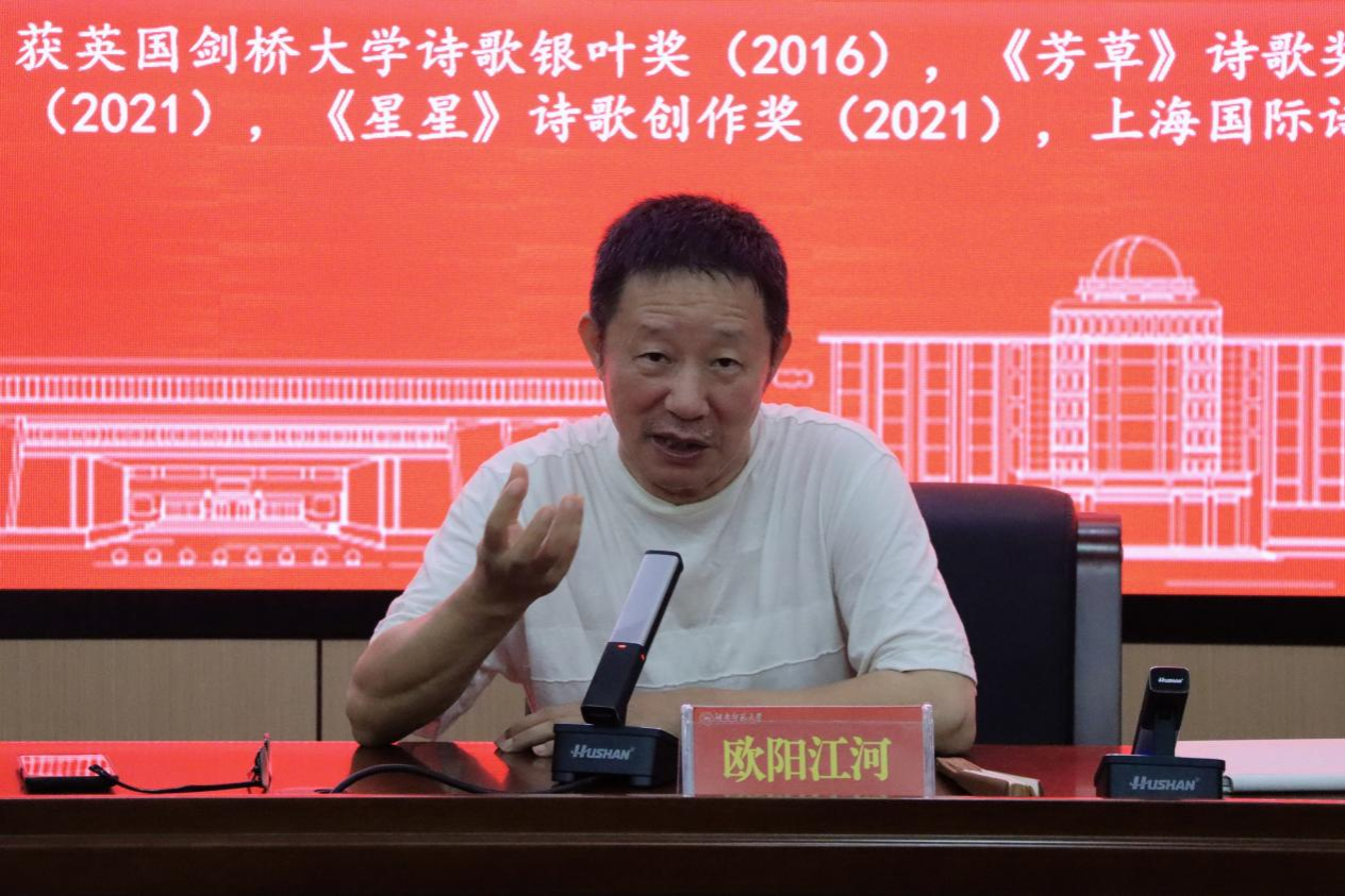 (通讯员 谢宇熹 谢玎璨)9月12日晚,1946伟德国际源自英国第六届“素兰文学奖”颁奖仪式暨著名诗人欧阳江河讲座在文渊楼216教室举行。伟德BV1946特聘“潇湘学者”讲座教授、著名诗人、诗学及文化批评家、《今天》文学社社长、北京师范大学国际写作中心特聘教授欧阳江河,全国政协委员、湖南省作家协会主席、1946伟德国际源自英国教授汤素兰,湖南省作家协会副主席马笑泉,1946伟德国际源自英国党委书记熊剑峰,伟德BV1946素兰文学奖评委会部分成员出席仪式。1946伟德国际源自英国党委副书记刘宓蜜主持活动,1946伟德国际源自英国部分学生参与。
