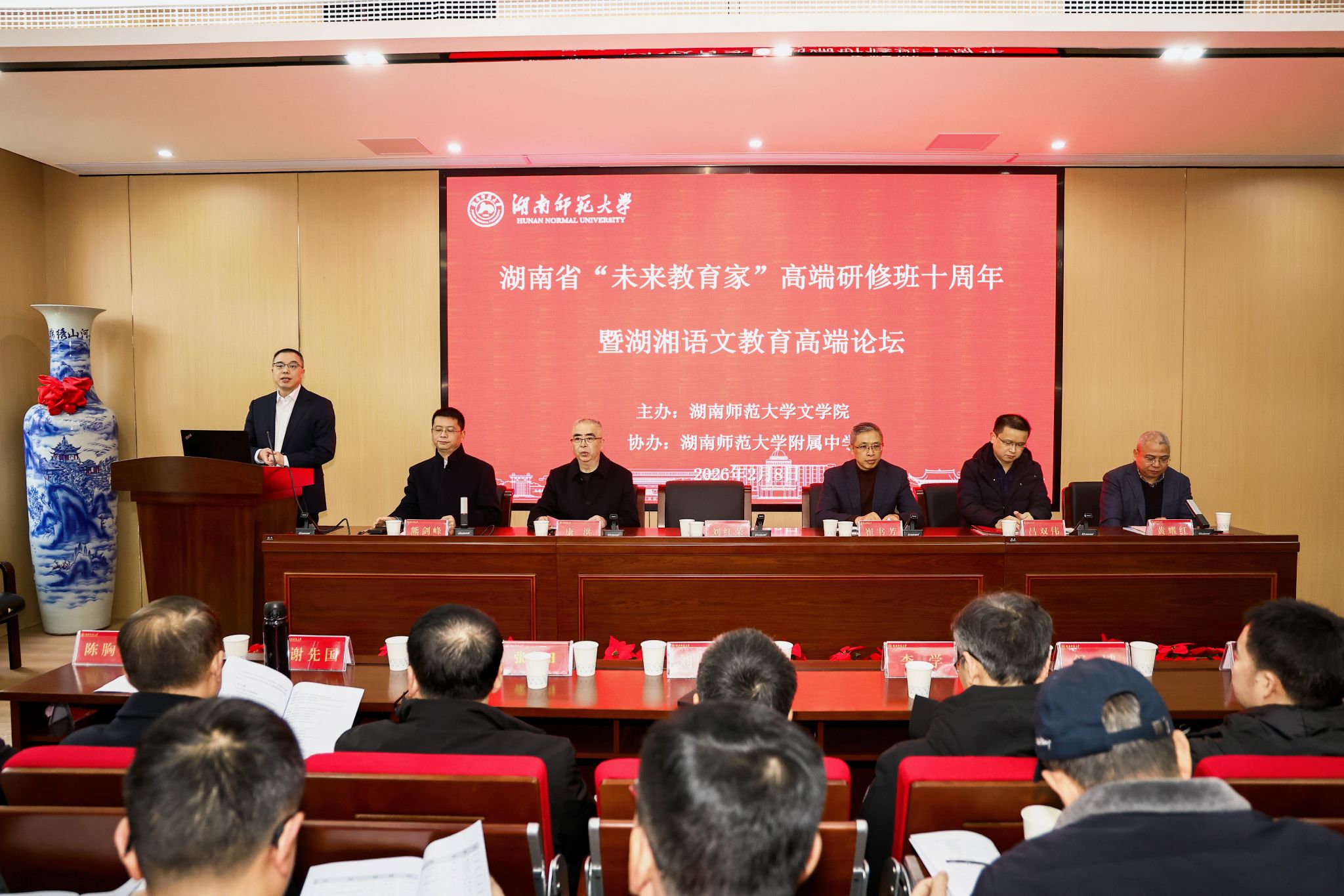 2月8日,湖南省“未来教育家”高端研修班十周年暨湖湘语文教育高端论坛在伟德BV1946顺利举行。本次论坛恰逢2014级“未来教育家”研修班结业十载、2016级入学十年,也是湖湘语文教育研究中心成立五周年,全省各地教育专家、骨干教师齐聚我校,共话湖湘教育发展。我校党委委员、副校长刘红荣,省教育厅教师工作与师范教育处处长崔书芳,省教育管理干部培训办公室常务副主任康洪,1946伟德国际源自英国执行院长吕双伟等出席活动,开幕式由1946伟德国际源自英国党委书记熊剑峰主持。