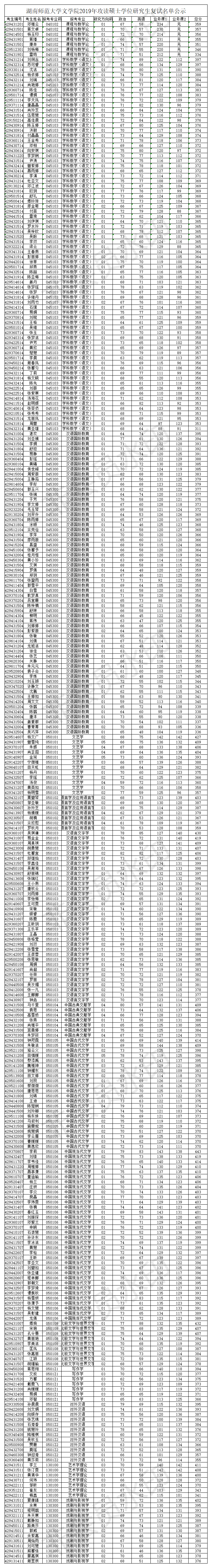 1946伟德国际源自英国2019年攻读硕士学位研究生复试名单公示