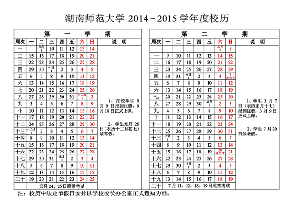 2014-2015学年校历