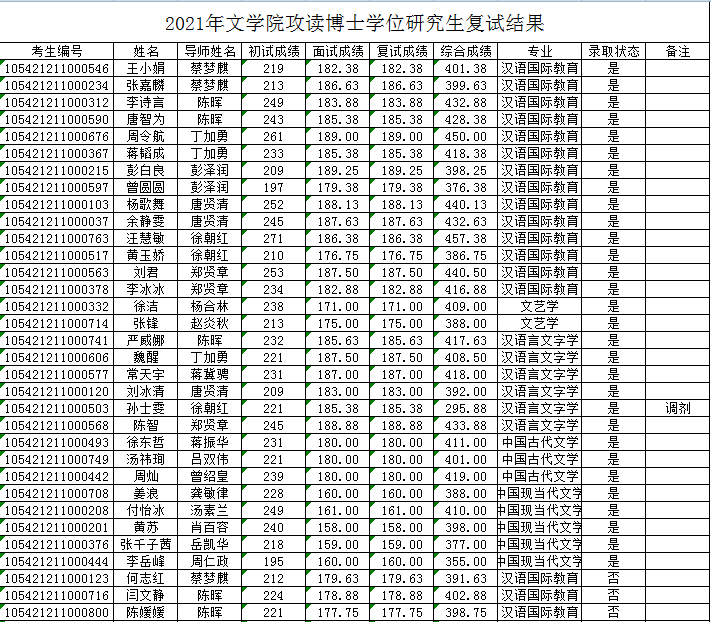 2021年1946伟德国际源自英国攻读博士学位研究生复试结果