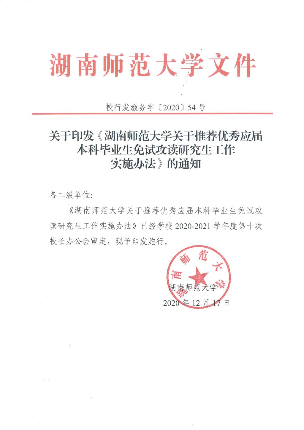 关于印发《伟德BV1946关于推荐优秀应届本科毕业生免试攻读研究生工作实施办法》的通知