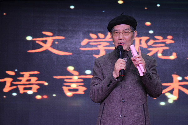 比赛结束后,鲍厚星上台点评。他为同学们的认真准备和精彩表现“点赞”,对同学们勇于尝试,敢于创新的精神表示肯定,并希望语言艺术大赛的影响范围能逐步扩大。之后,主持人公布此次语言艺术大赛获奖名单,李伶俐、李树槐、鲍厚星三人为获奖团队颁奖。